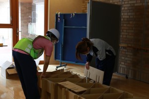 ボランティアさんや利用者様に要介護者の役をお願いし、実際に受付から段ボールベッドへご案内し、非常食を食べていただきました。