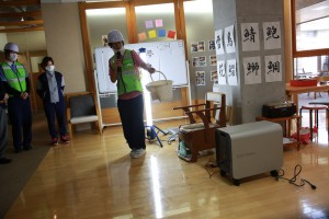 今回は震度6弱の地震を想定し、ライフラインは水道のみ使用でき、その他の電気、ガス、エレベーター、電話、FAX等は使用できない設定で行いました。